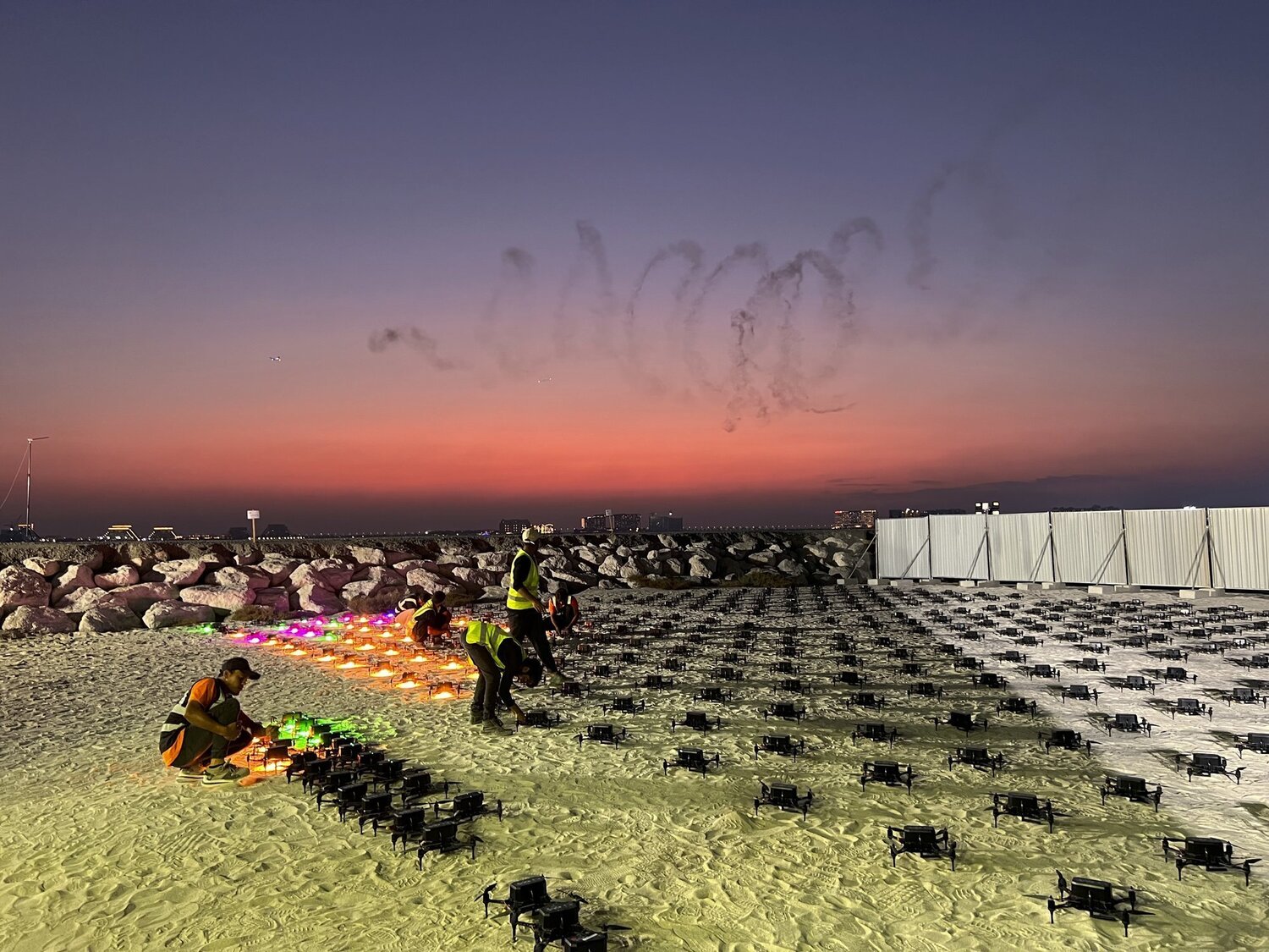 Our crews have experienced environments ranging from high-altitude winter conditions in the Italian Alps to tropical beaches in the British Virgin Islands. We have delivered everything from intimate drone displays in the Scottish Highlands to massive 1,600-drone productions in desert locations. Combined with the expertise of our sister company Star Fireworks, one of the UK’s leading fireworks display companies, we bring extensive experience in live event production, logistics and spectacular night-time entertainment.